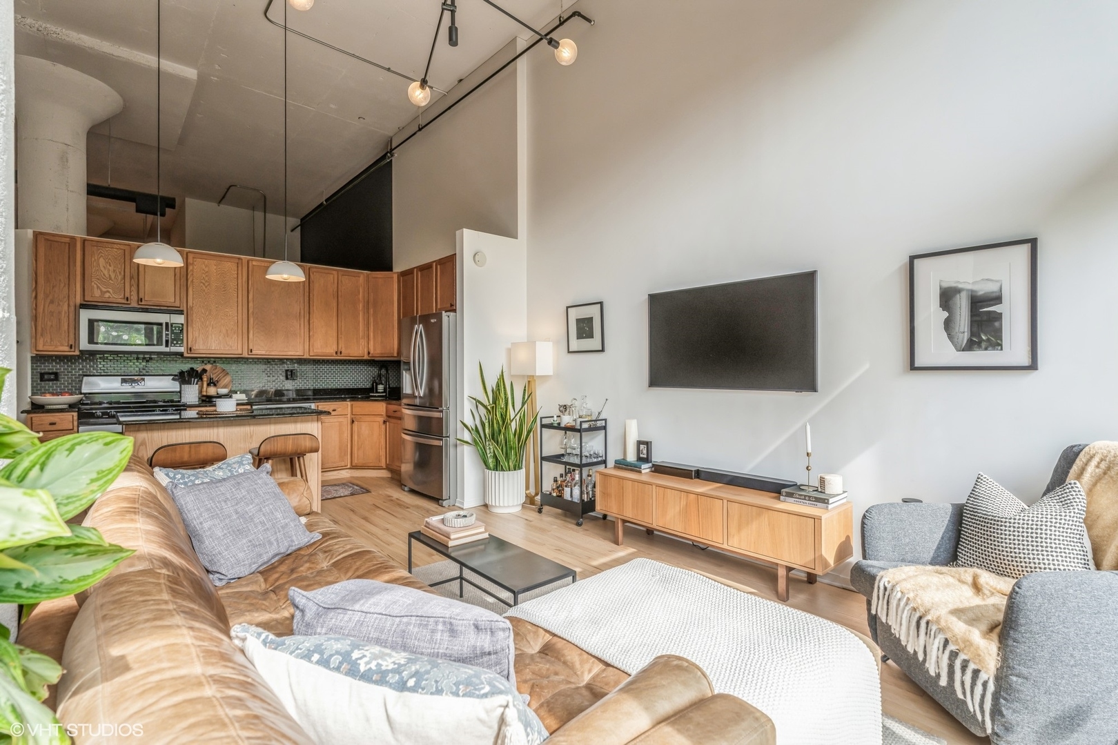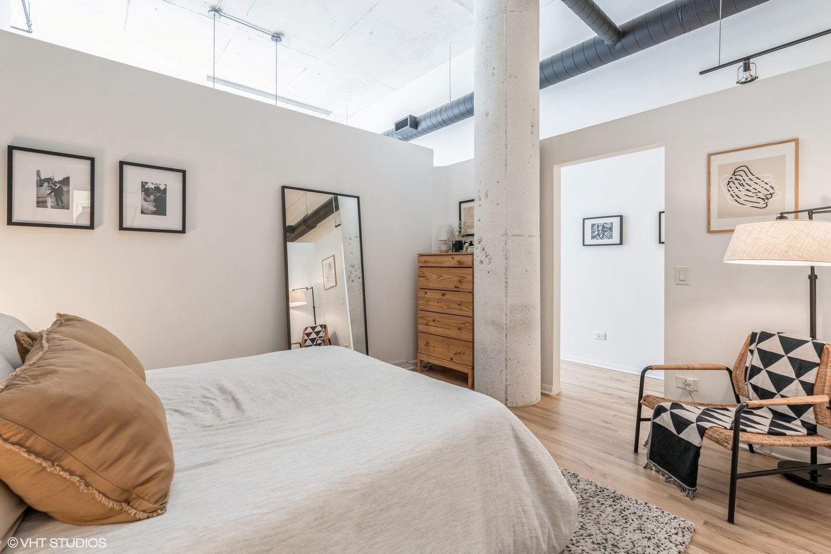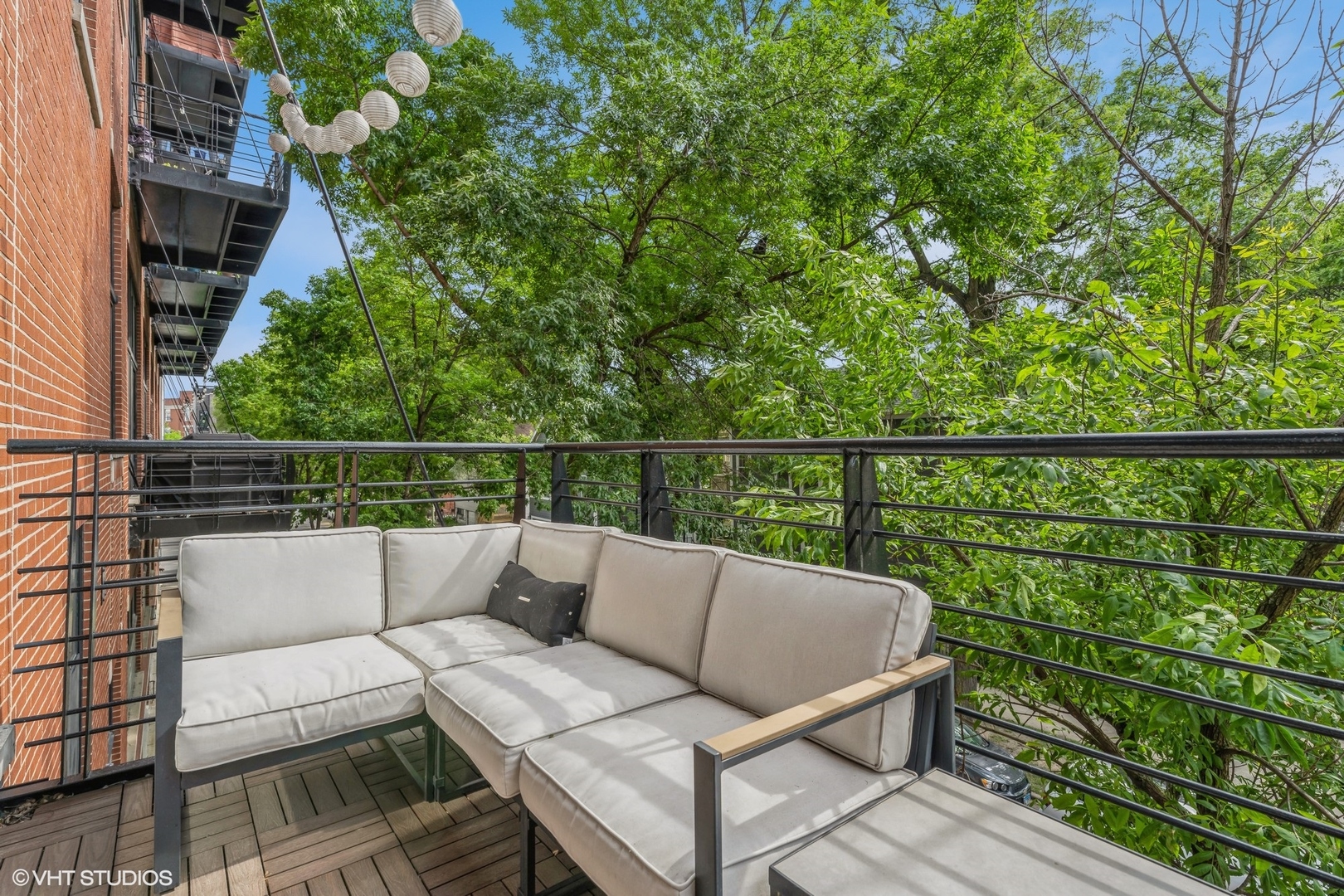 This stunning two bed, one bath concrete designer loft boasts treetop living in one of the most desirable elevator buildings in Logan Square. The space includes refinished hardwood floors throughout, updated bath and lighting, and floor to ceiling windows that lead to your own private east-facing balcony where you can enjoy the quiet tree-lined street. The spacious master bedroom includes a large walk-in closet and connected bath with soaking tub. The smaller second bedroom is perfect for an office. Soaring 16ft ceilings, in-unit laundry, and large storage closets finish off this fantastic home. Amazing location steps to the 606, blue line, shops and restaurants. Streaming Direct TV and Internet included in rent. One bike slot and storage cage included. Building amenities include separate passenger and freight elevators, a common rooftop deck w/ skyline views, and front intercom w/ keyless entry feature for guests and deliveries. One attached heated garage parking space available as well.