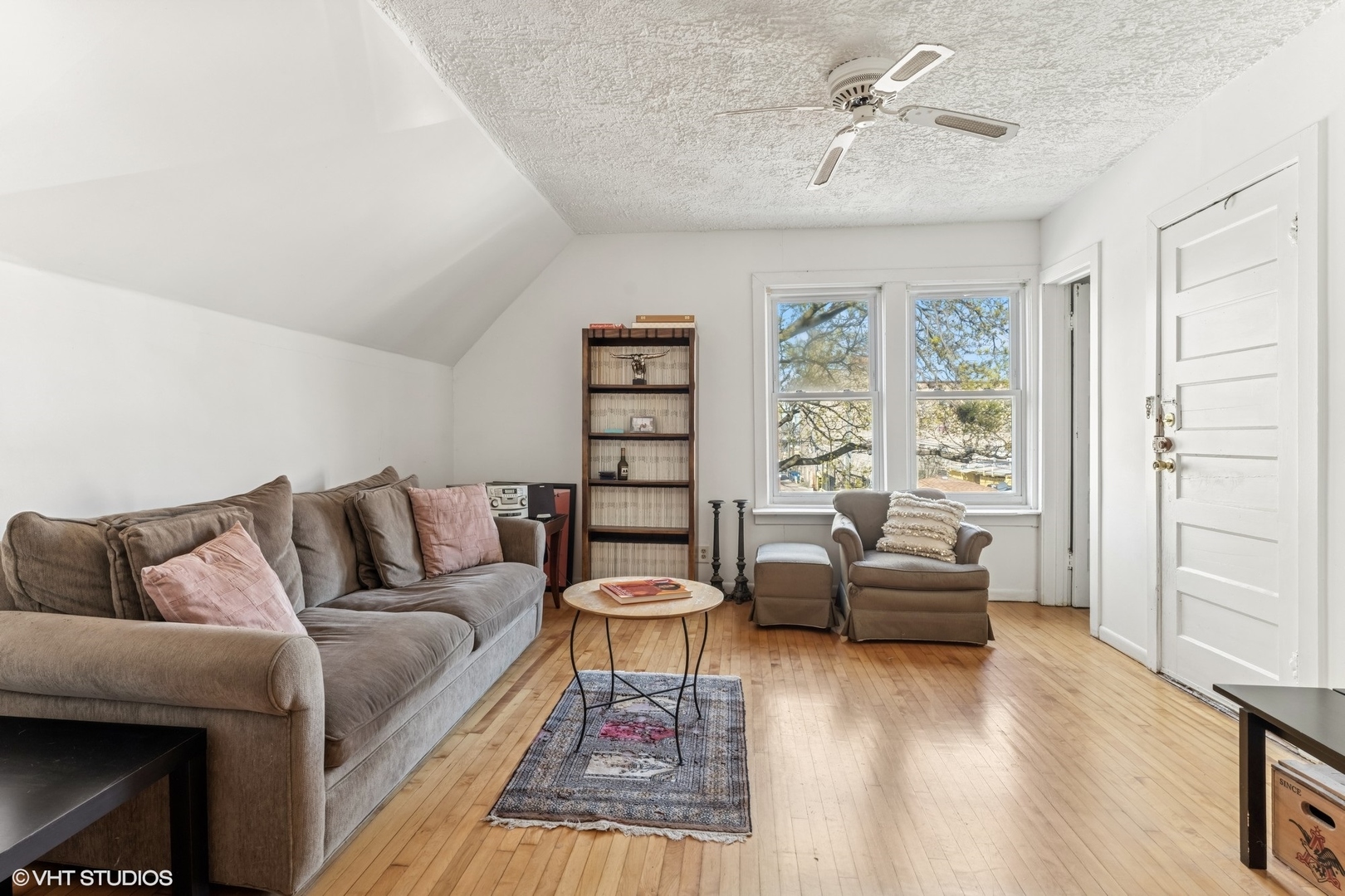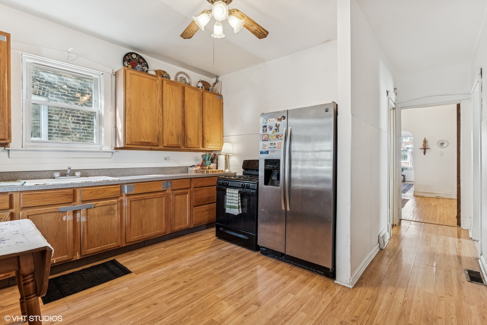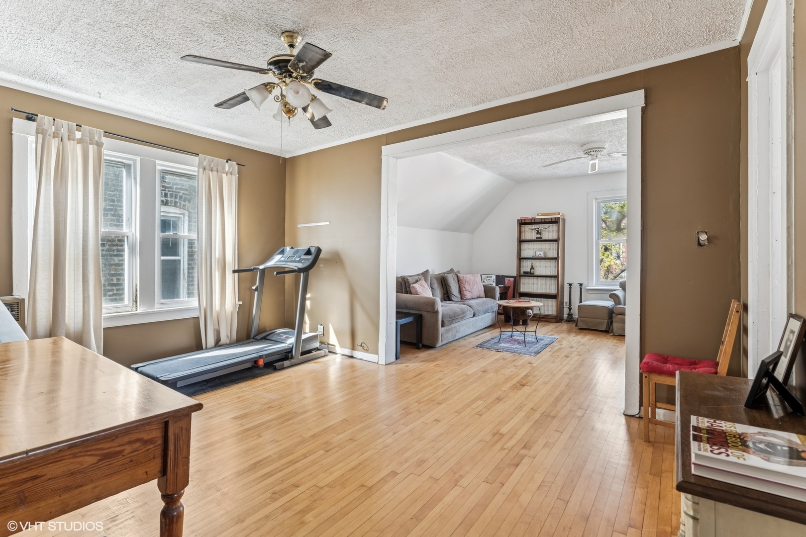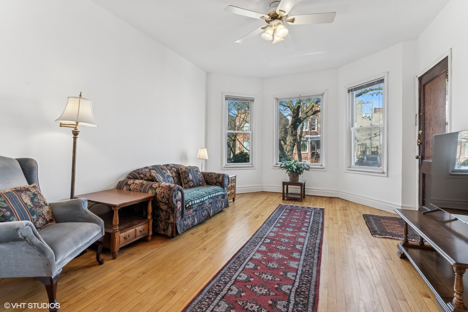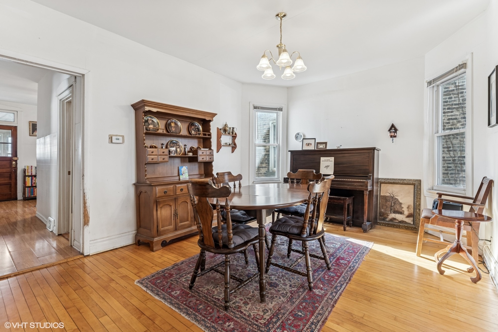 Here's your chance to get your foot in the door of this fixer upper Logan Square two flat on a 30' wide lot! While it does need work, this property has good bones and is in decent shape with a nice layout and lovely light. The build right up to the lot line on this extra wide lot provides spacious living areas and a nice flow. Gleaming hard wood floors reflect the natural light as the building benefits from ample room between neighboring buildings. This is a great opportunity to move in and improve over time. Each unit has three bedrooms (two larger and one perfect for an office), front living room, separate dining room, kitchen and one bathroom. The first floor has gas forced air heat and central AC while the second floor has gas space heaters that vent outside. The partially finished basement and enclosed back porches finish off the interior space. The exterior includes a nice little front yard and a fully enclosed back yard with a two car garage. Roof approximately 10 years old. Short walk to great Fullerton restaurants, Koz Park and Sugar Moon Bakery (yum!). Approximately one mile to Palmer Square and Logan Square. This tree-lined block provides a good mix of quiet living with proximity to amenities.