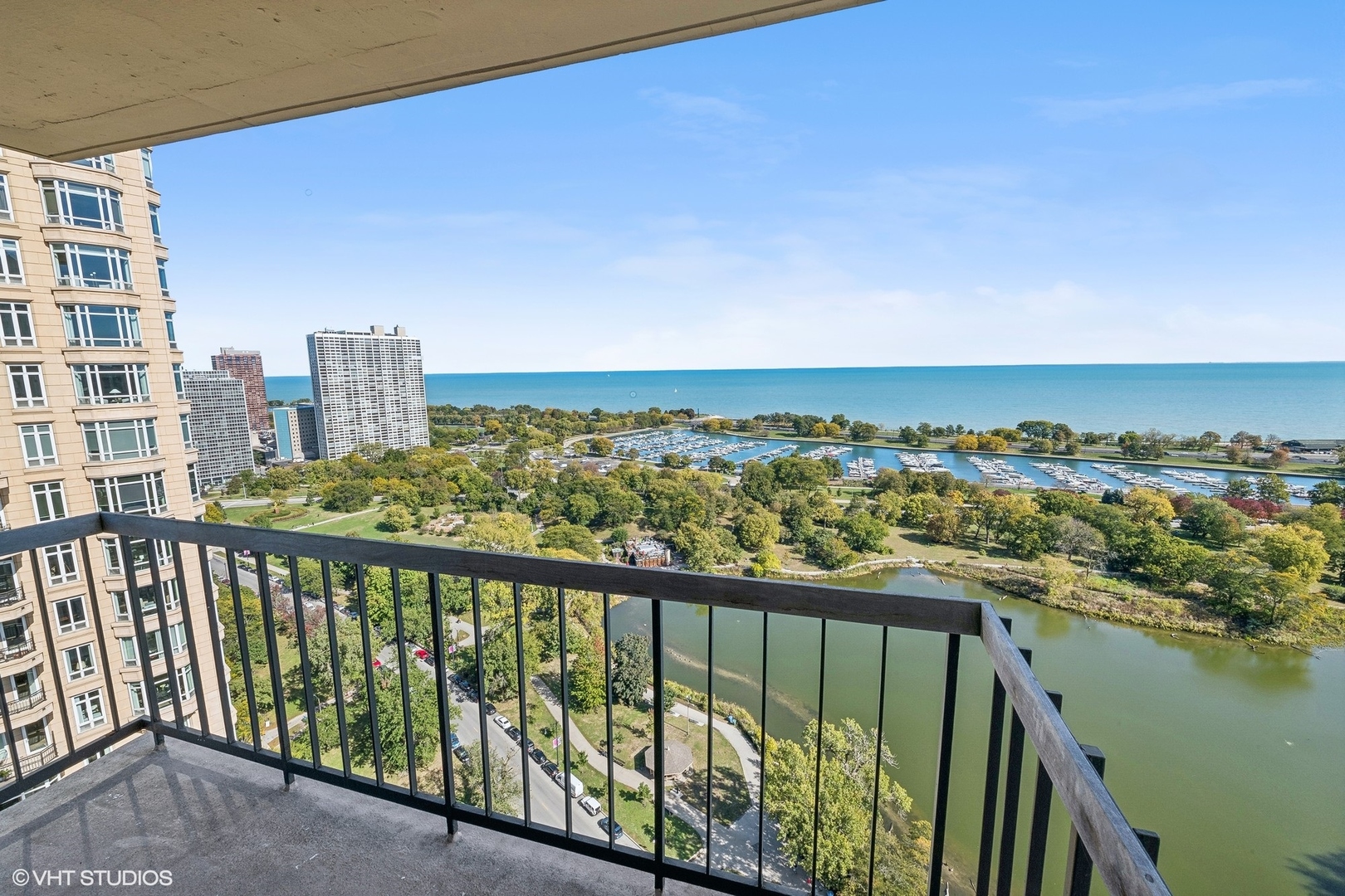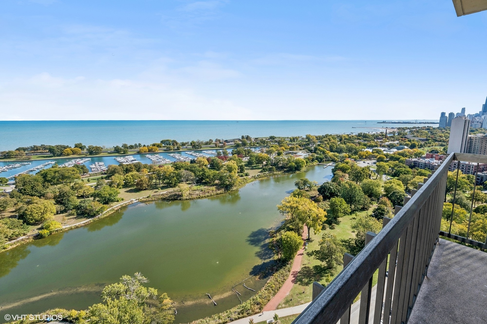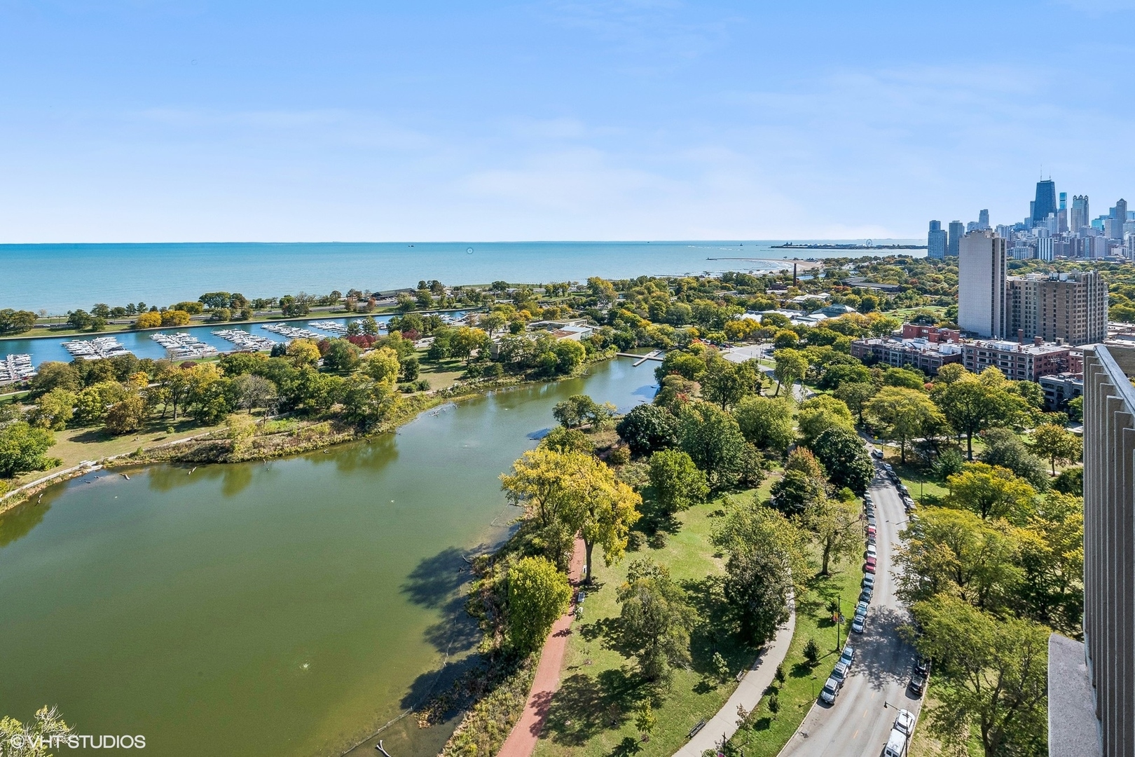 Welcome to 2500 North Lakeview Avenue, Unit 3004, a unique opportunity to transform a rare, east-facing, 3-bedroom, 2 bath corner unit residence into your dream home. This highly coveted and rarely available 04-tier unit offers breathtaking east-facing views with a covered balcony overlooking Lake Michigan, the harbor, and Lincoln Park's North Pond. Perched on the thirtieth floor of a premier full amenity building, this functional unit features newer Brazilian Cherry hardwood flooring, ample closet space, and a spacious formal foyer to welcome you home. Bright white eat-in kitchen opens up to the sun-drenched dining and living rooms with dramatic north and east views. A large primary suite features a walk-in closet and ensuite bath. Well-sized bedrooms 2 and 3 offer beautiful north and western exposures. 2500 North Lakeview is a prestigious 35-story building with full amenities, situated across from Lincoln Park's North Pond and the Lake. Constructed in 1974, this 155-unit property is meticulously maintained by a 24/7 door staff, on-site maintenance team, and building manager. It is pet-friendly and features an outdoor heated pool, barbecue area with an entertainment deck, hospitality suite, fitness center, bike room and laundry room. Additionally, it offers leased parking through its attached heated parking garage with valet service. Proximity to everything Lincoln Park has to offer. Buses 151 and 156 are conveniently right outside your door. This property offers a canvas for those with a vision, ready to infuse their style into a prime Chicago location. Whether you're looking to renovate for personal use or investment, this unit is a rare find. Experience the best of city living with the added benefits of a vibrant location and unmatched amenities. Don't miss the chance to make this space your own.