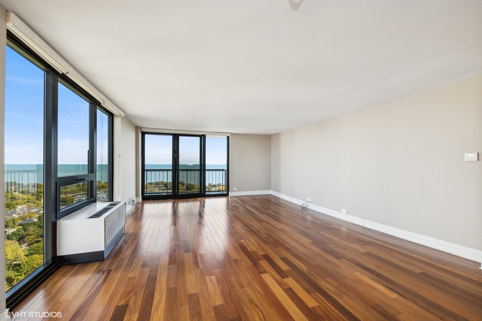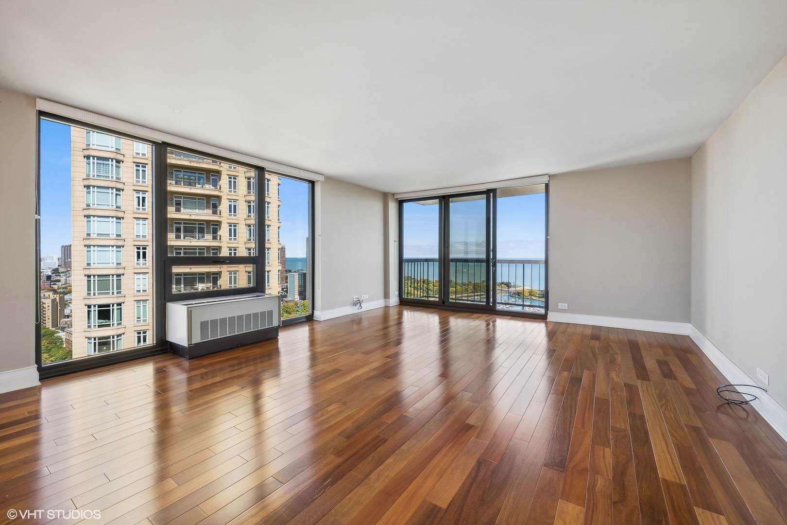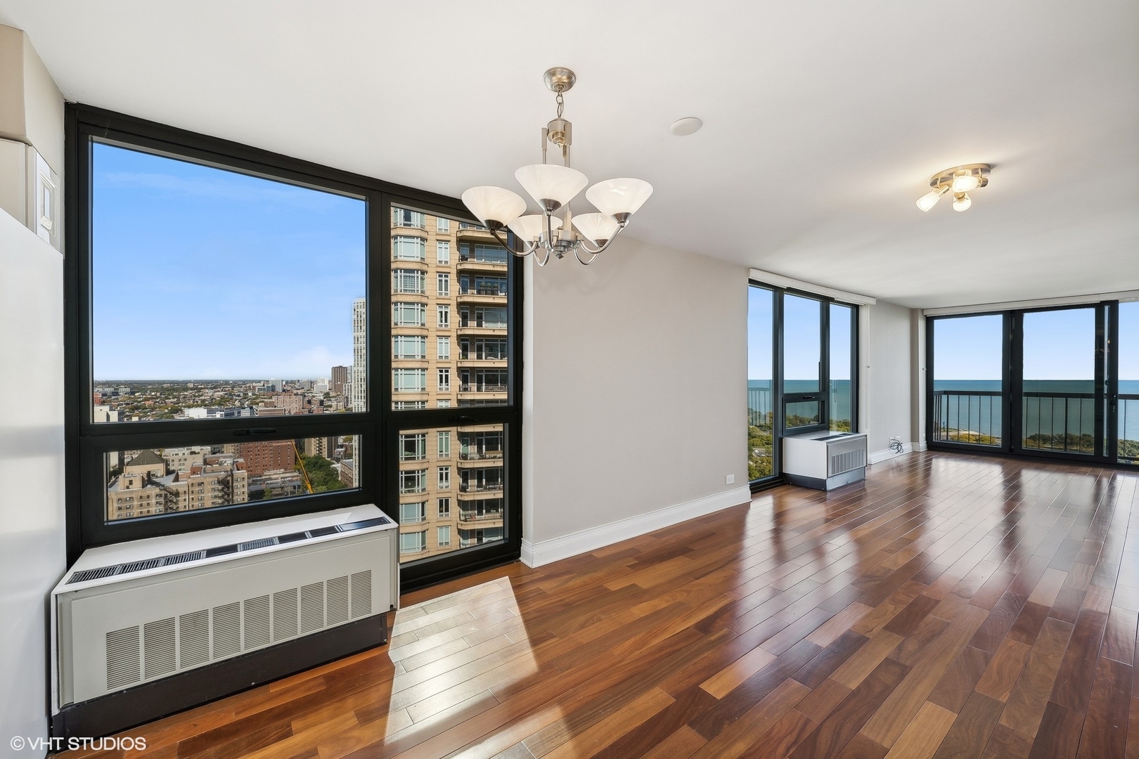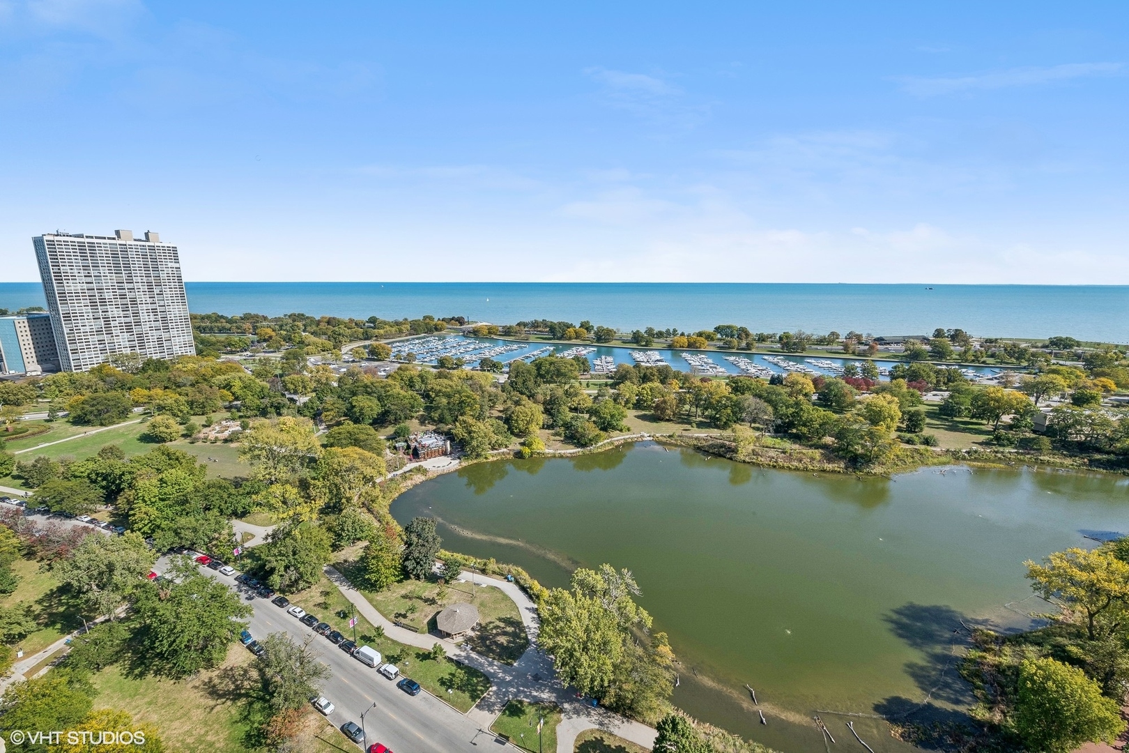 Welcome to 2500 North Lakeview Avenue, Unit 3004, a unique opportunity to transform a rare, east-facing, 3-bedroom, 2 bath corner unit residence into your dream home. This highly coveted and rarely available 04-tier unit offers breathtaking east-facing views with a covered balcony overlooking Lake Michigan, the harbor, and Lincoln Park's North Pond. Perched on the thirtieth floor of a premier full amenity building, this functional unit features newer Brazilian Cherry hardwood flooring, ample closet space, and a spacious formal foyer to welcome you home. Bright white eat-in kitchen opens up to the sun-drenched dining and living rooms with dramatic north and east views. A large primary suite features a walk-in closet and ensuite bath. Well-sized bedrooms 2 and 3 offer beautiful north and western exposures. 2500 North Lakeview is a prestigious 35-story building with full amenities, situated across from Lincoln Park's North Pond and the Lake. Constructed in 1974, this 155-unit property is meticulously maintained by a 24/7 door staff, on-site maintenance team, and building manager. It is pet-friendly and features an outdoor heated pool, barbecue area with an entertainment deck, hospitality suite, fitness center, bike room and laundry room. Additionally, it offers leased parking through its attached heated parking garage with valet service. Proximity to everything Lincoln Park has to offer. Buses 151 and 156 are conveniently right outside your door. This property offers a canvas for those with a vision, ready to infuse their style into a prime Chicago location. Whether you're looking to renovate for personal use or investment, this unit is a rare find. Experience the best of city living with the added benefits of a vibrant location and unmatched amenities. Don't miss the chance to make this space your own.